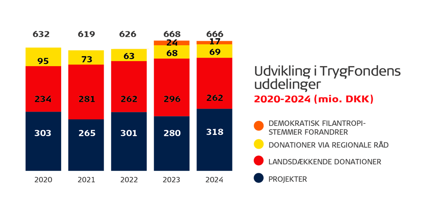 | TrygFondens uddelinger, mio. kr. | 2024 | 2023 | 2022 |