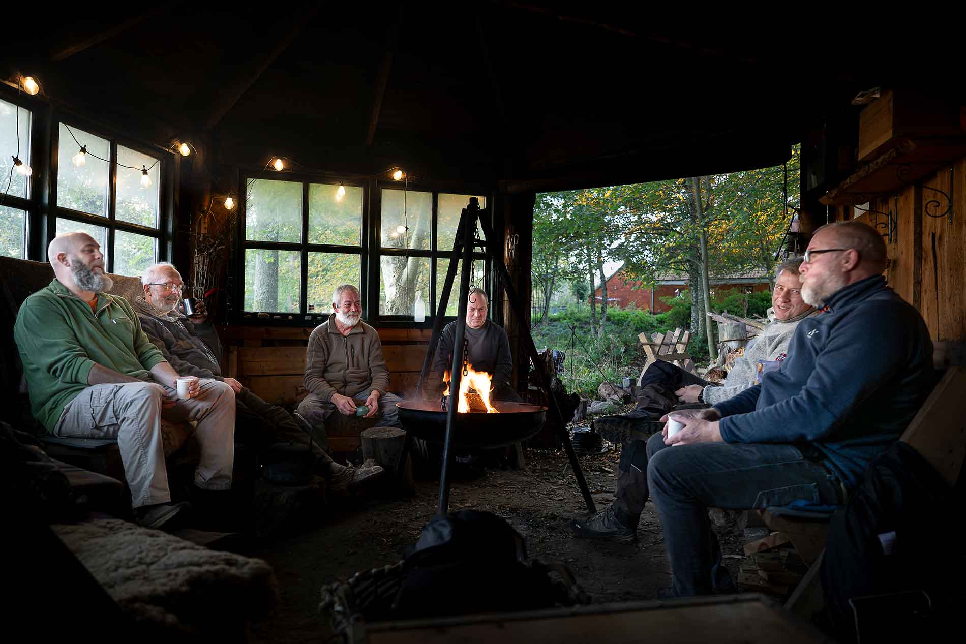 ”Det er fantastisk at komme her hver torsdag og mødes med de andre mænd. Jeg kan tydeligt mærke, hvordan hjerterytmen og stressniveauet falder, når vi er her i naturen, og vi kommunikerer simpelthen så godt sammen, når vi sidder skulder ved skulder omkring bålet. Det er bare godt,” siger han.