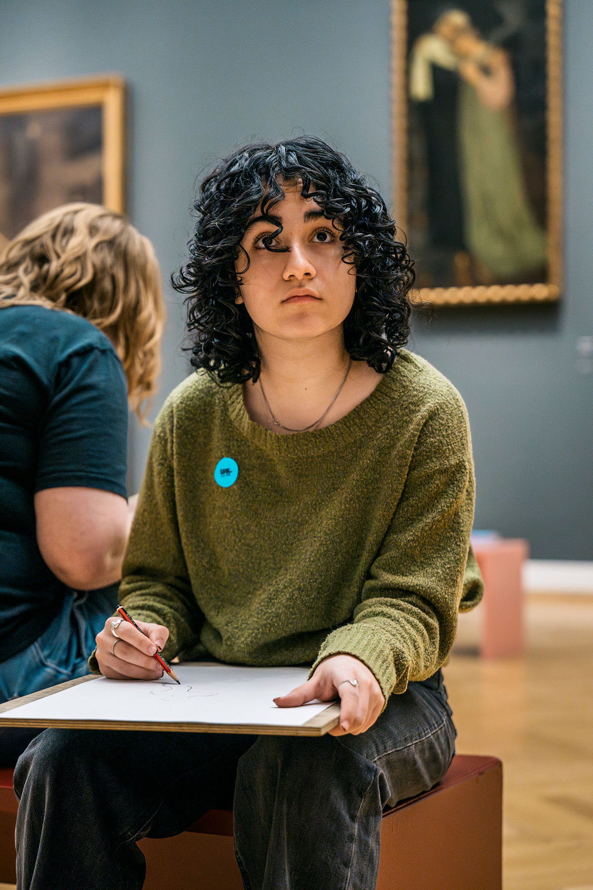 Hediye tegner sin fortolkning af en svensk billedkunstners selvportræt, mens Kamma laver et portræt af sin lillesøster inspireret af et maleri af en kvinde foran et spejl. Laura på 16 fylder sit papir med forårsstemning og masser af blomster.