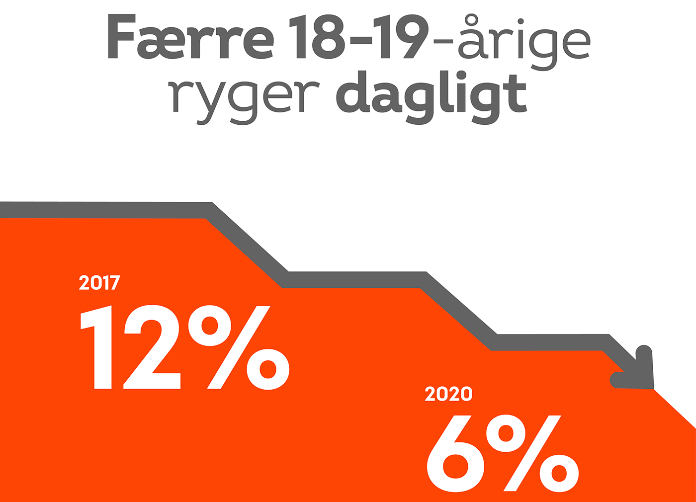 I 2017 røg 12 pct. af danske 18-19-årige hver dag. I 2020 var det kun tilfældet for halvt så mange. Det viser nye tal fra ’Røgfri Fremtids Ungeundersøgelse’, som Kræftens Bekæmpelse og TrygFonden står bag. Andelen af unge, der ryger enten dagligt eller lejlighedsvist, er faldet fra 26 pct. i 2017 til 16 pct. i 2020.