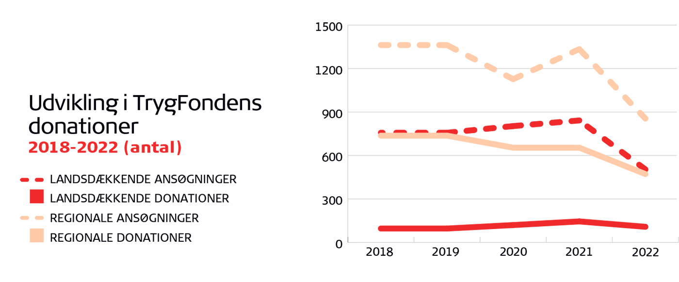 ”Sammen skaber vi tryghed i Danmark” i kraft med fem strategiske mål. Derfor præsenteres TrygFondens uddelinger nedenfor i to særskilte tabeller.