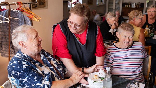 Klirren med bestik og summen af stemmer fylder lokalet hos Thereses Køkken, når der inviteres til fællesspisning, snak, grin og god stemning. -